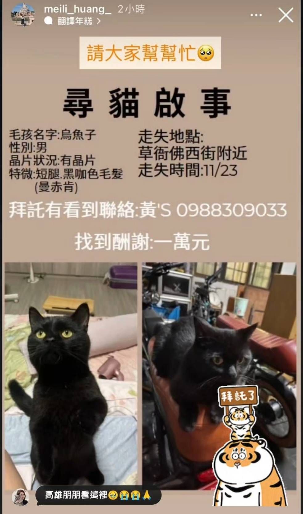 【尋找貓咪~黑姆 地點 高雄市前鎮區】 轉貼內容 大家好,朋友的貓貓不見了,拜託大家幫忙我們找黑姆,謝謝🙏 https:...