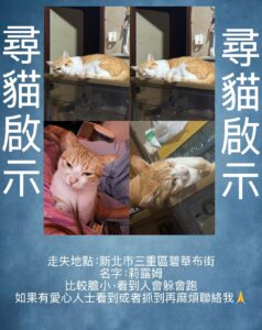 【尋找貓咪~莉露姆 地點 新北市三重區】