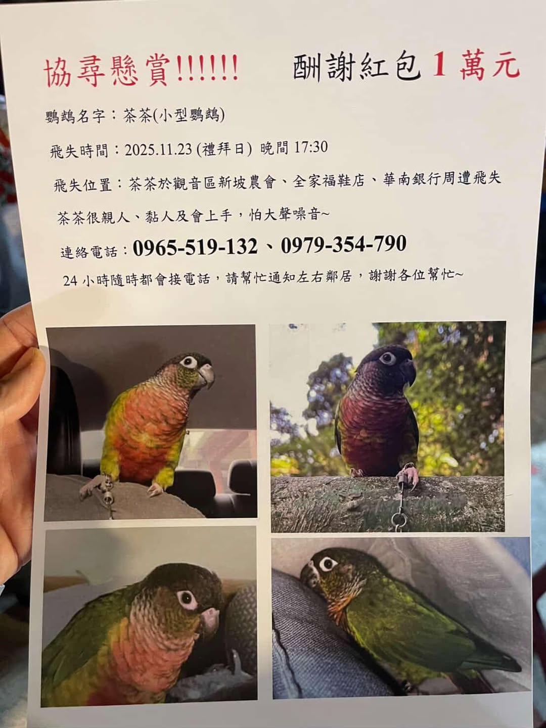 飛失位置:茶茶於觀音區… https://twpetsearch.arlinks.net/2025/12/guanyin-taoyuan-parrot.html