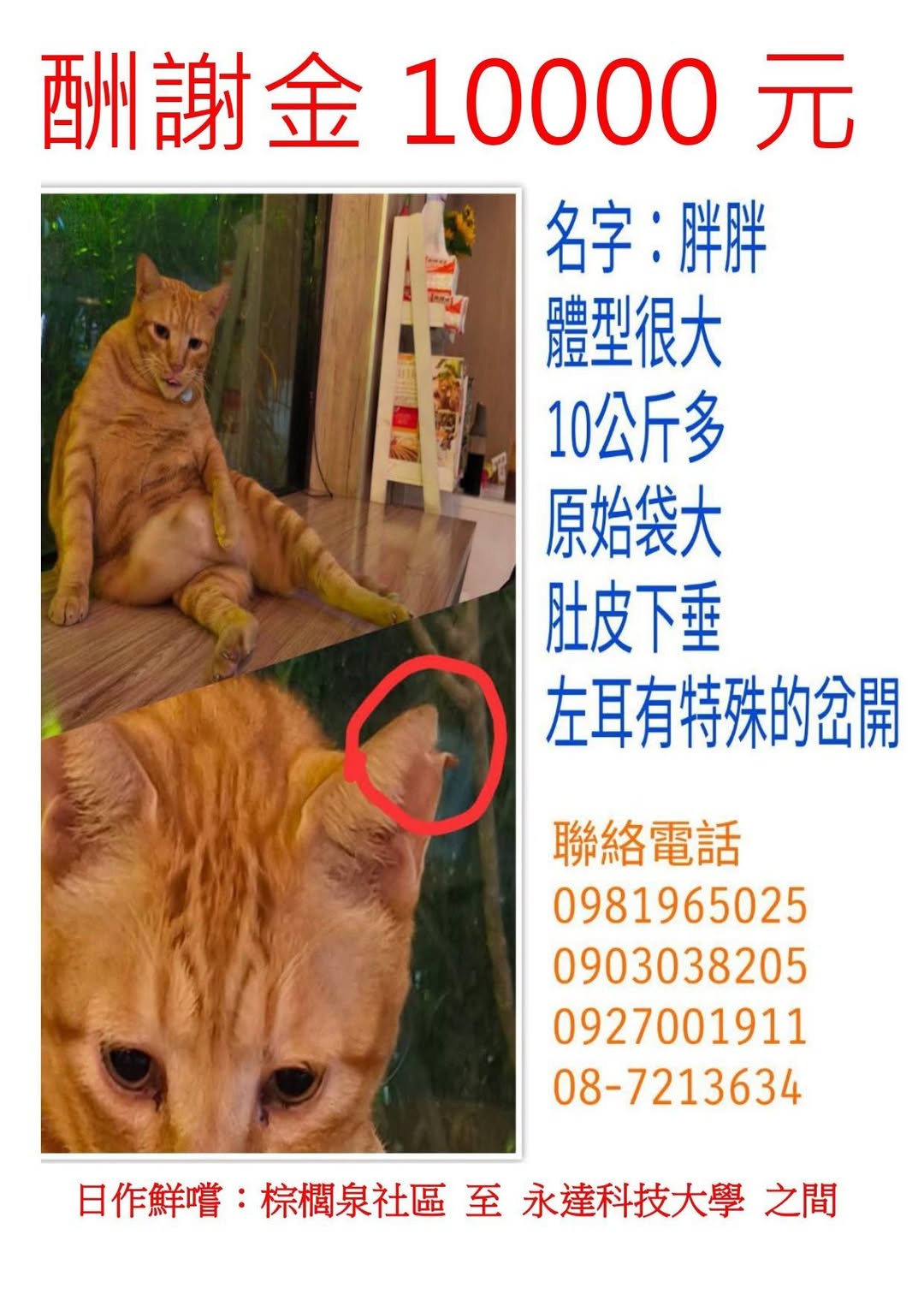 名字:胖胖 體型很大 10公斤多 原始袋大 肚皮下垂 左… https://twpetsearch.arlinks.net/2025/12/linluo-pingtung.html