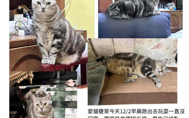 【尋找美國短毛貓~甕萊 地點 台南市永康區】