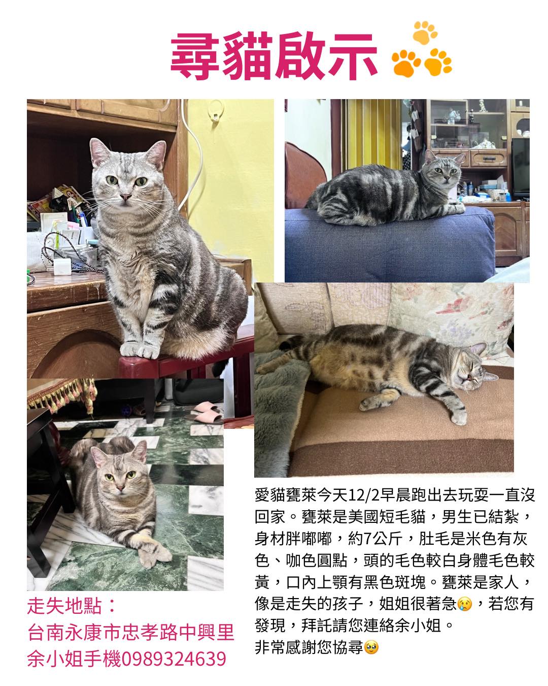 【尋找美國短毛貓~甕萊 地點 台南市永康區】