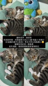 性別與特徵:虎斑貓女生/3-4歲/有晶片/有結紮但沒有剪耳!耳朵大大的所以有點…