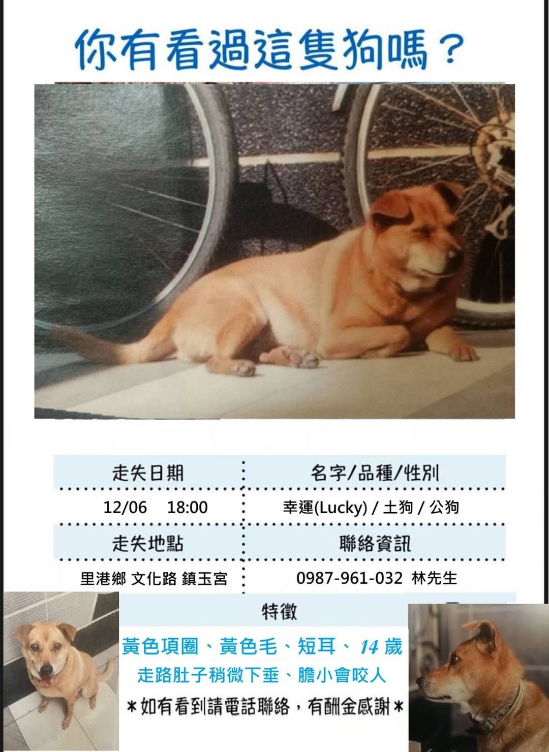 【尋找狗狗~幸運 地點 屏東縣里港鄉】