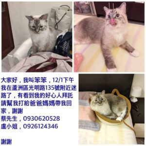 【尋找布偶貓~笨笨 地點 新北市蘆洲區】