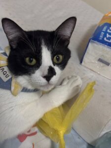 毛色:奶牛貓 鼻子左邊有黑點 下巴有黑點