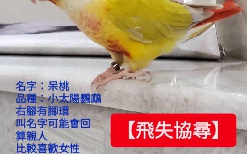 【尋找太陽鸚鵡~呆桃 地點 台南市安南區】 轉貼內