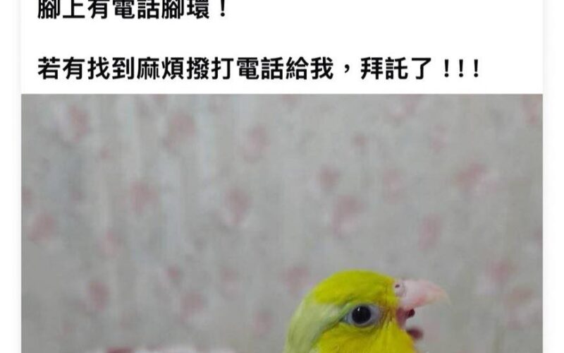 【尋找鸚鵡~喵喵 地點 高雄市三民區】 轉貼內容