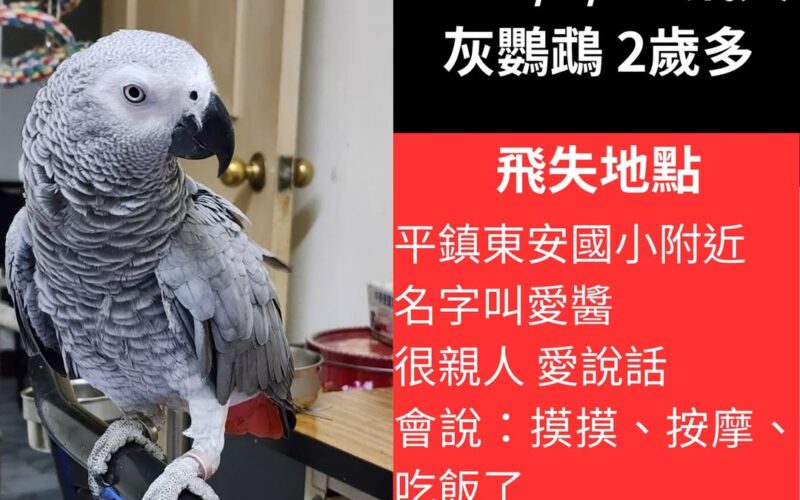 【尋找非洲灰鸚鵡~愛醬 地點 桃園市平鎮區】 轉貼