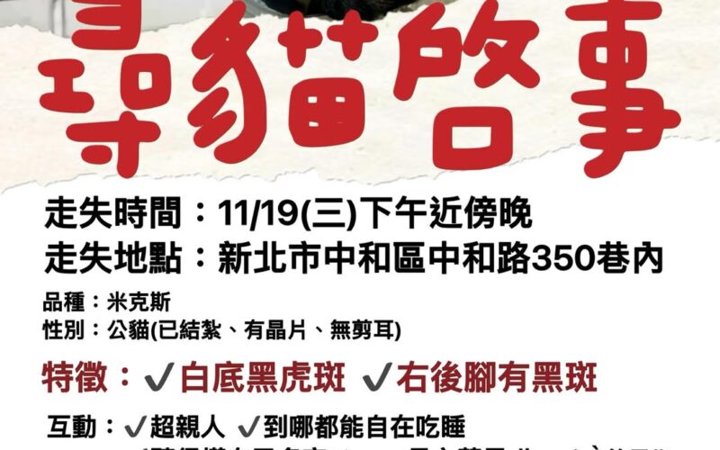 【尋找貓咪~肉丸 地點 桃園市平鎮區】 轉貼內容