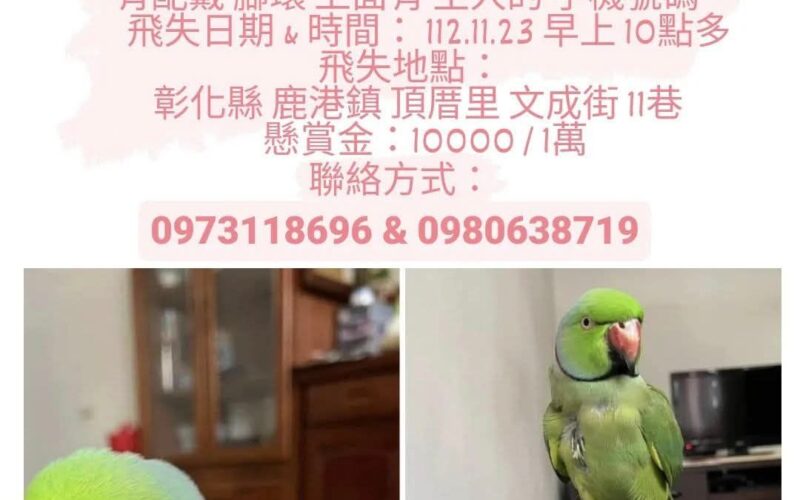 【尋找折衷鸚鵡~多多 地點 新竹市東區】 轉貼內容