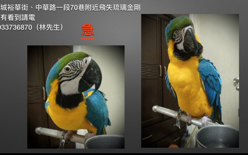 【尋找金剛鸚鵡~琉璃 地點 新北市土城區】 轉貼內