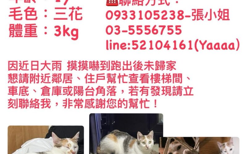 【尋找貓咪~米果 地點 桃園市大園區】 轉貼內容