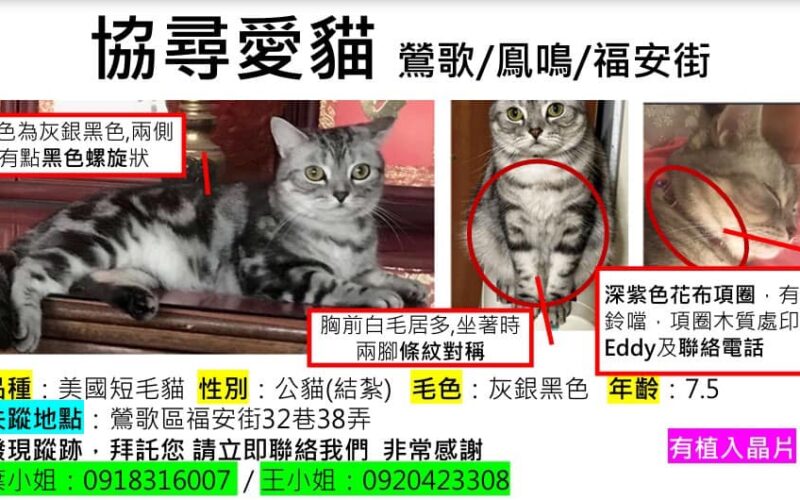 【尋找美國短毛貓~Eddy 地點 新北市鶯歌區】
