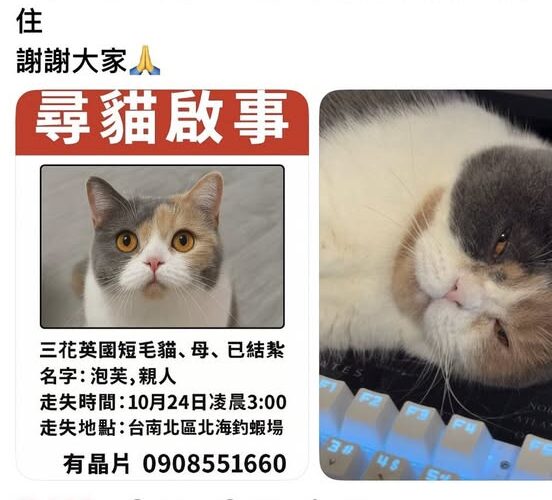 【尋找英國短毛貓~泡芙 地點 台南市北區】 轉貼內