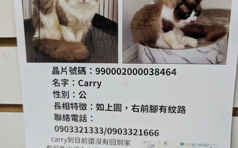 【尋找貓咪~Carry 地點 高雄市楠梓區】 轉貼